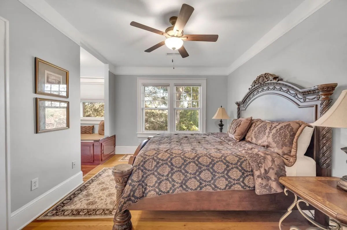 Come experience Bonnie Haven! This historic gem, most recently known as a 5-star Bed and Breakfast, has been transformed into a 10-bedroom, 9.5-bathroom getaway. Located in the historic Hyman Heights district on an expansive property, Bonnie Haven is a serene retreat within walking distance of charming downtown Hendersonville and Patton Park. Guests can enjoy a variety of shops, restaurants, breweries, galleries, a fabulous children's museum and more! A short 30-minute drive from downtown Asheville, the Biltmore and Pisgah National Forest, Bonnie Haven provides a wonderful balance of convenience and relaxation.